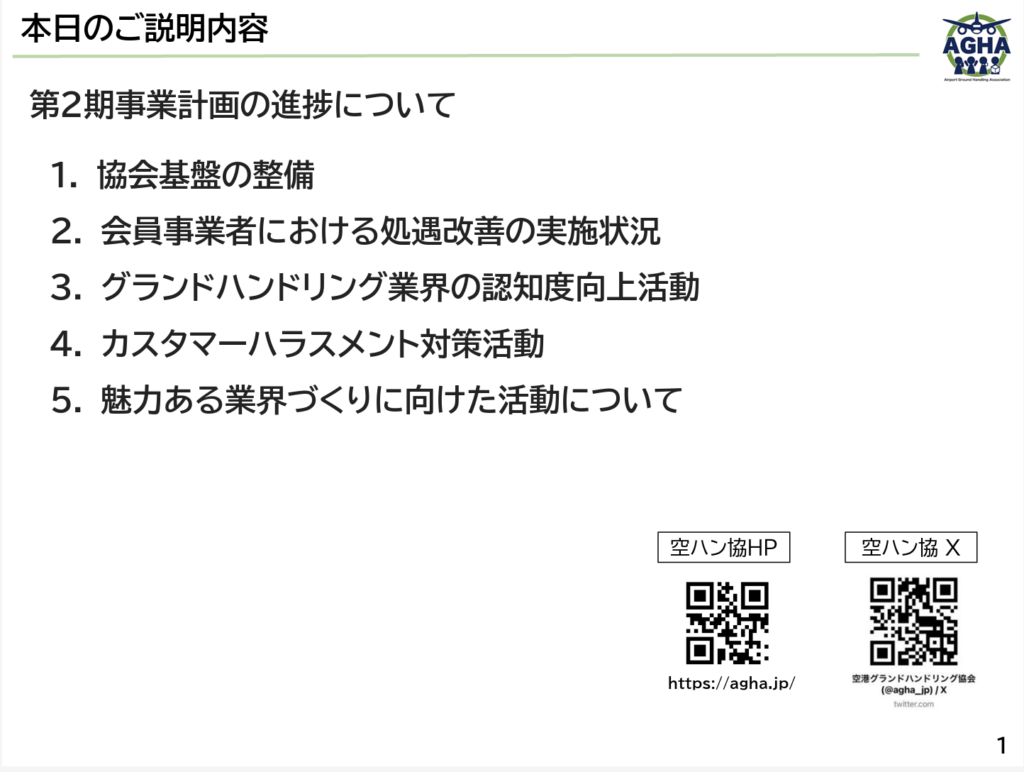 第10回持続的な発展に向けた空港業務のあり方検討会にて、空ハン協第2期事業計画の進捗について発信しました。