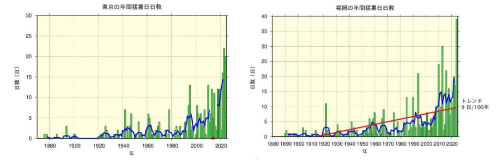 日本の気象庁の観測データによれば、夏季の真夏日・猛暑日の頻度は全国的に増加傾向にあり、従業員の熱中症リスクも顕著に高まっています。