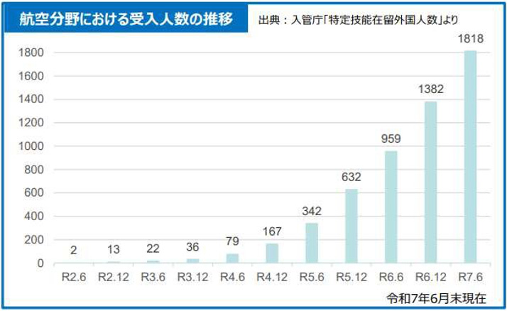 【航空分野における特定技能在留外国人受入人数の推移】グラフ出典:航空局資料