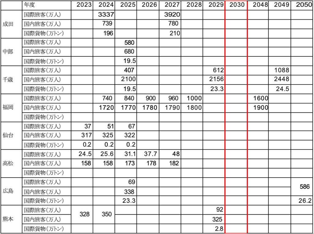 【空港運営各社の事業計画(旅客数/貨物量目標)の例】